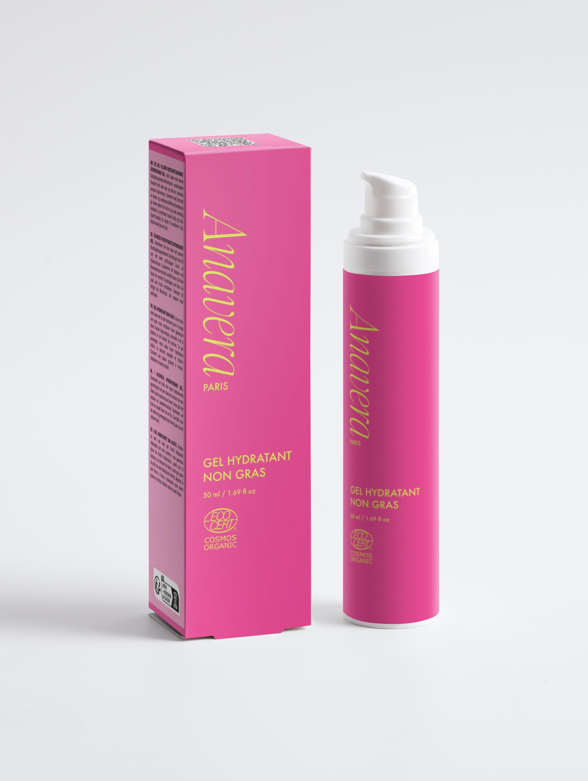 Nettoie en profondeur, élimine impuretés et excès de sébum tout en respectant la peau. Sans alcool, testée dermatologiquement.• Gel Hydratant Non Gras (22 €)